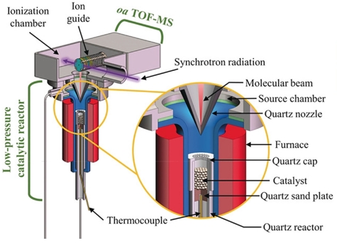 采用同步辐射真空紫外光电离质谱(synchrotron vacuum ultraviolet photoionization mass spectrometry,SVUV-PIMS)捕捉中间产物极大地促进了对催化反应的理解。这篇评论介绍了SVUV-PIMS的结构,然后重温了一项出色的科学工作,该工作利用SVUV-PIMS阐明了草酸二甲酯(mechanisms of dimethyl oxalate,DMO)在铜纳米颗粒(copper nanoparticles,Cu NPs)支撑的脱铝β沸石(dealuminated Beta zeolite,Beta-deAl)上加氢转化为乙二醇的机理。采用SVUV-PIMS观察关键中间产物,特别是(CHO)Cu1*物质,可实时、原位地了解Cu NPs在DMO加氢过程中的动态行为。研究结果表明,甲醇处理后形成了硅醇巢,并出现了金属铜和Cu2O相。这种处理有助于保持较小的纳米颗粒尺寸,从而获得较高的乙二醇产率和较长的催化剂稳定性。此外,他们的催化剂还解决了二氧化硅浸出等常见问题,这些问题往往会影响基于CuSiO2基催化剂的耐久性。通过重新审视他们的工作,这篇评论强调了SVUV-PIMS在催化研究中的变革潜力,对反应中间产物的操作适应性对于开发更高效、更耐用的催化剂非常宝贵。